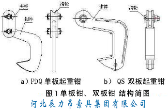 1.1 PDQ型單板起重鉗(以下簡稱單板鉗)與QS型雙板起重鉗(以下簡稱雙板鉗),采用低合金高強度結構鋼制造并熱處理而成。