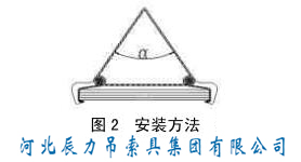 3.2  單板鉗與雙板鉗起吊鋼板時,必須與橫梁配套使用,其中α在(45-90)°之間,β在(0-15)°之間。橫梁的有效長度應不小于鋼板長的1/3。單板鉗或雙板鉗兩只試驗為額定載荷,四只為一組吊裝作業(yè),吊運過程中,鋼板應保持水平見圖3。